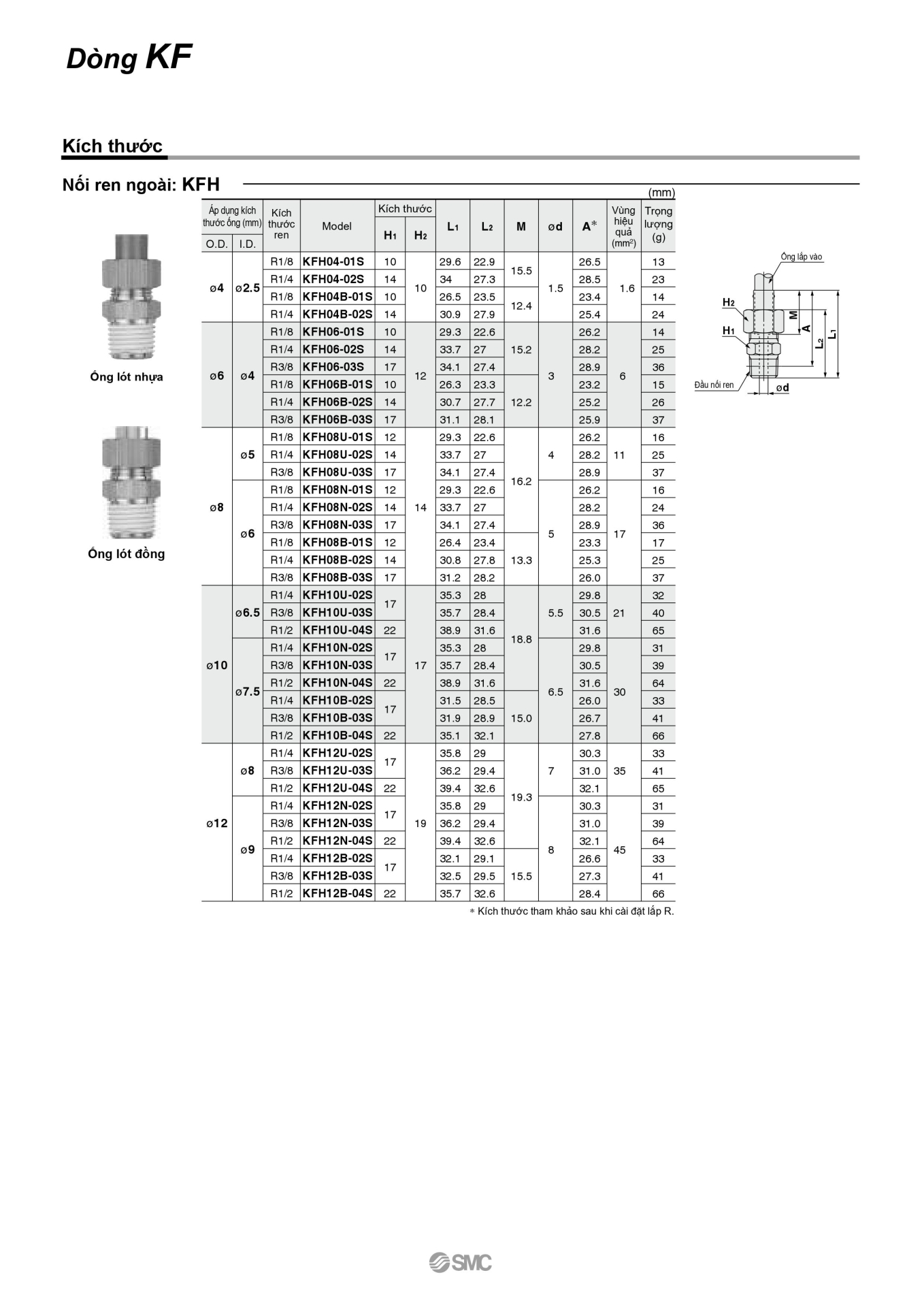 Thông tin kỹ thuật của sản phẩm SMC KFH08B-01S Nối Ren Ngoài