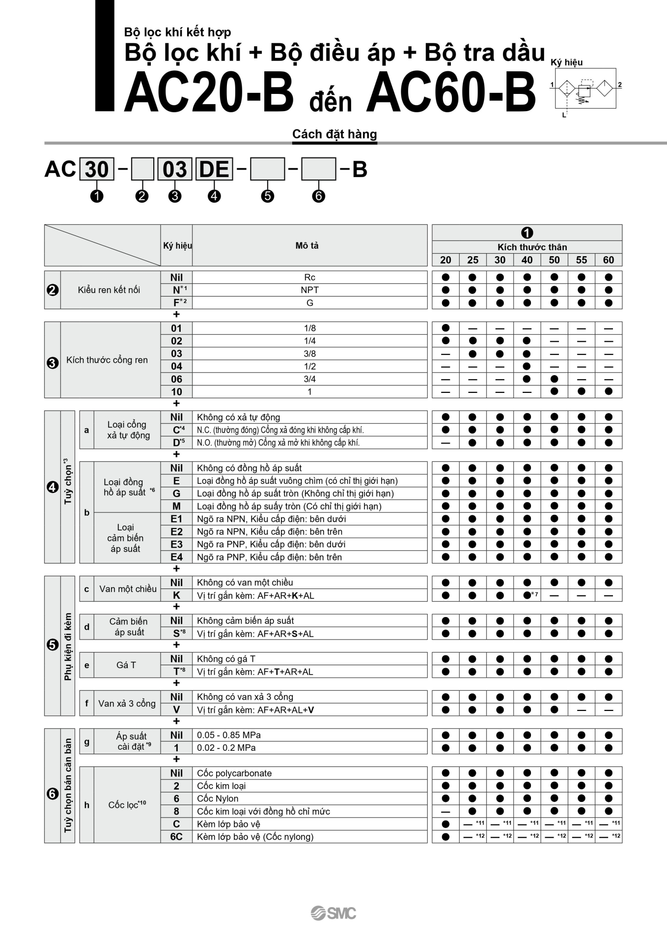 Thông tin kỹ thuật của sản phẩm SMC AC60-B