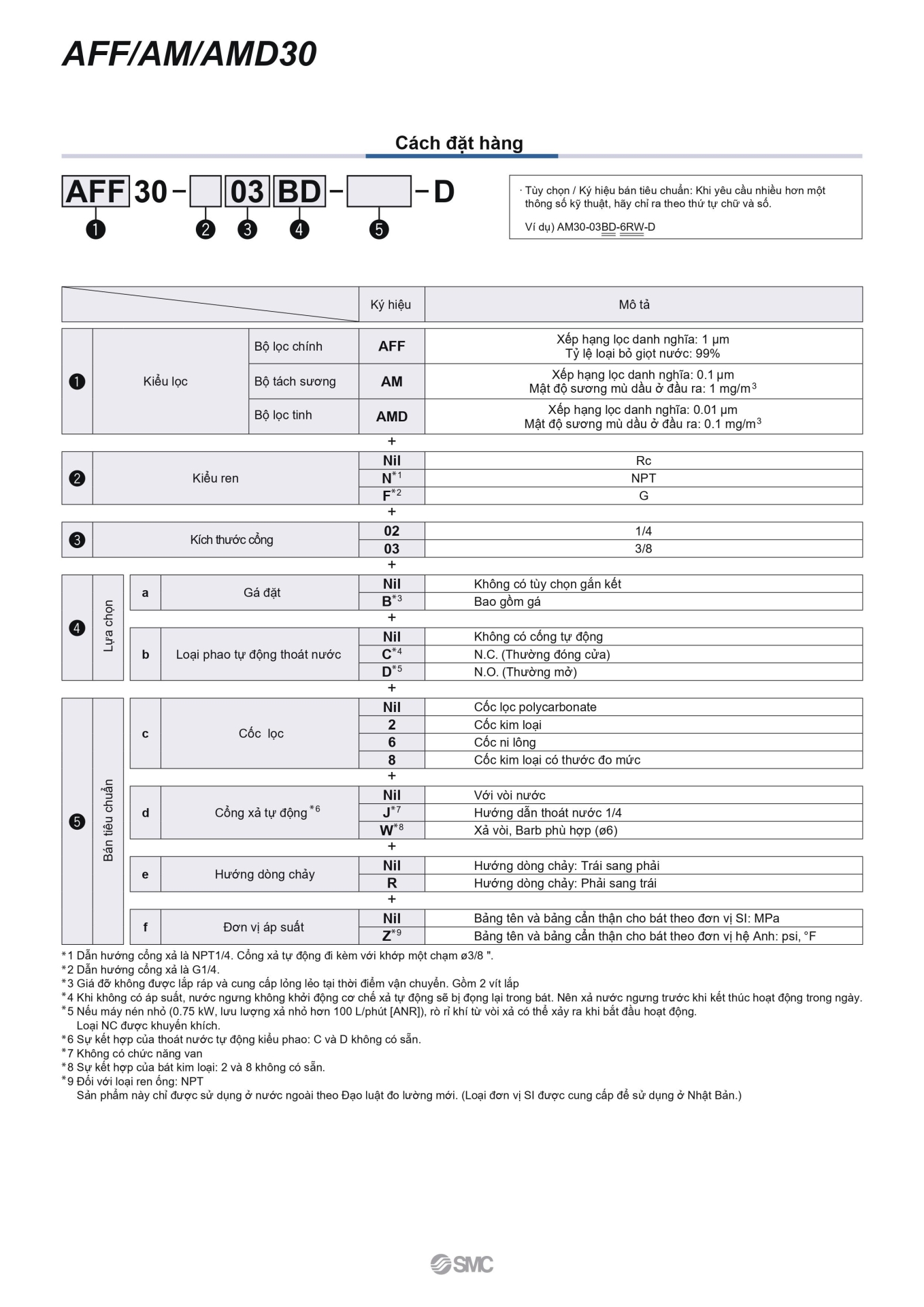 Thông tin kỹ thuật của sản phẩm SMC AFF30