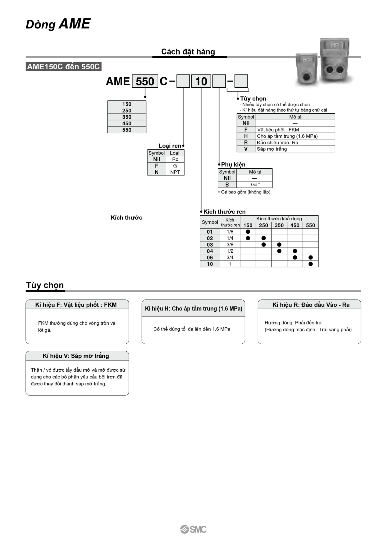 Thông tin kỹ thuật của sản phẩm SMC AME850C