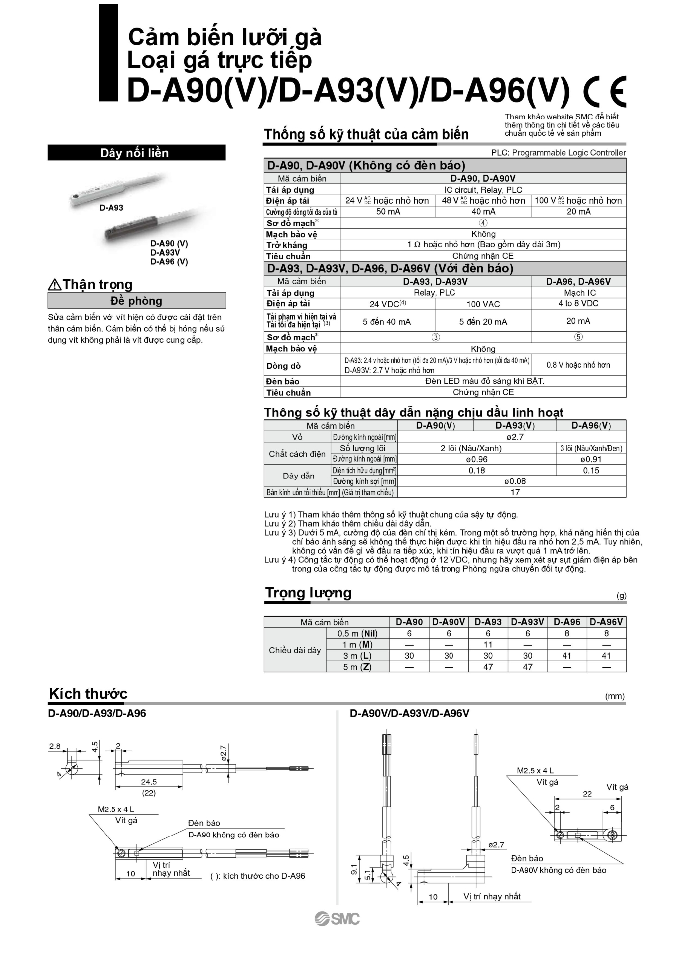 Thông tin kỹ thuật của sản phẩm SMC D-A96