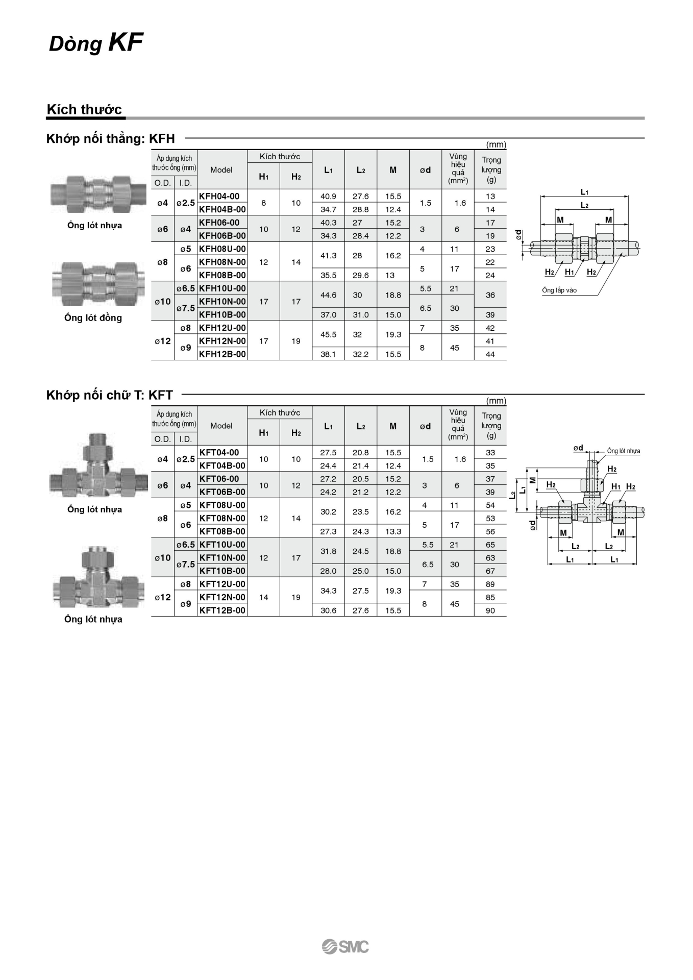 Thông tin kỹ thuật của sản phẩm SMC KFH06-00 Khớp Nối Thẳng